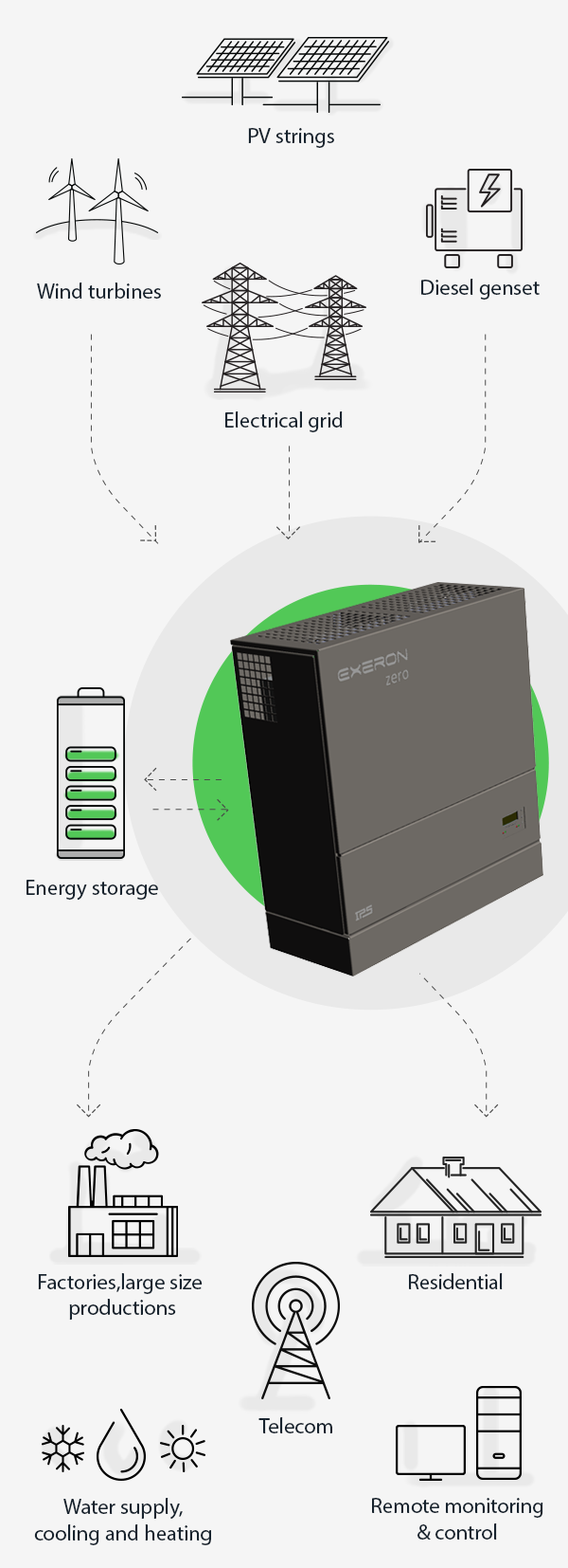 off-grid use in the form of the Exeron MX, which fulfils all requirements surrounding energy management,